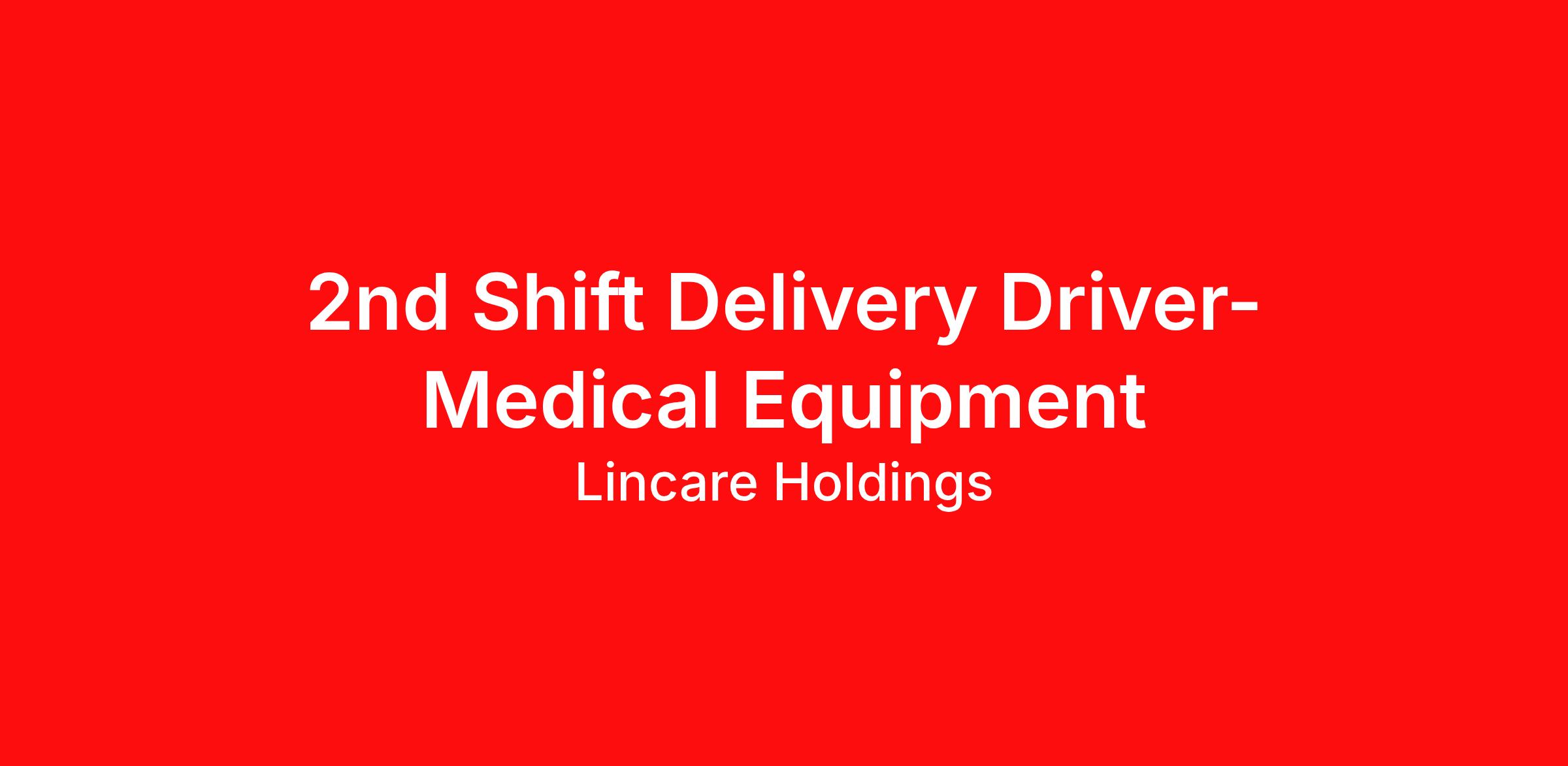 2nd Shift Delivery Driver- Medical Equipment