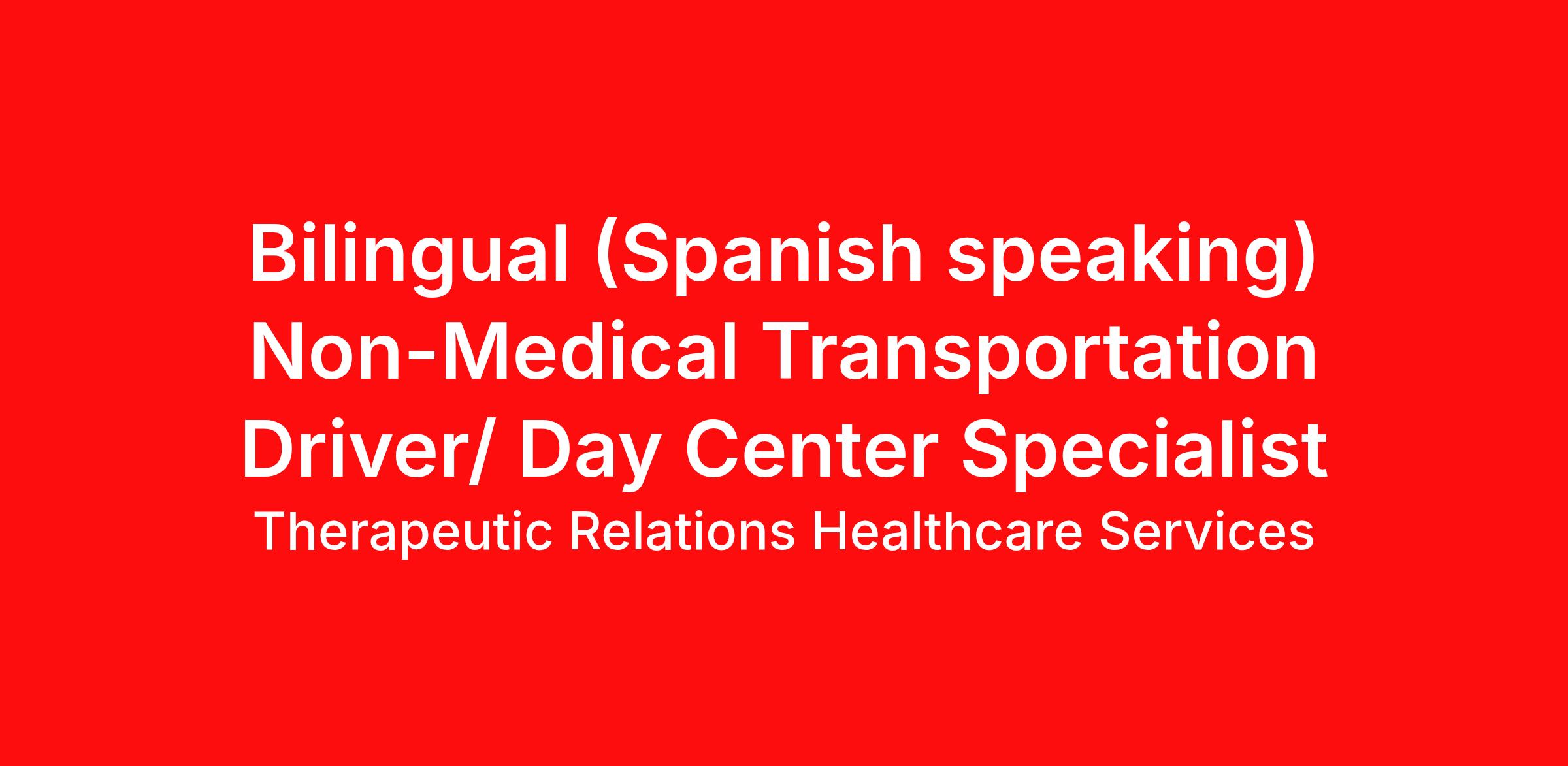 Are you passionate about making a difference in the lives of individuals with disabilities? Do you take pride in creating meaningful connections and providing reliable support? If so, Therapeutic Relations Healthcare Services is looking for someone like you! We’re seeking a dedicated and compassionate individual to join our team as a Bilingual (Spanish Speaking) Non-Medical Transportation Driver/Day Center Specialist.