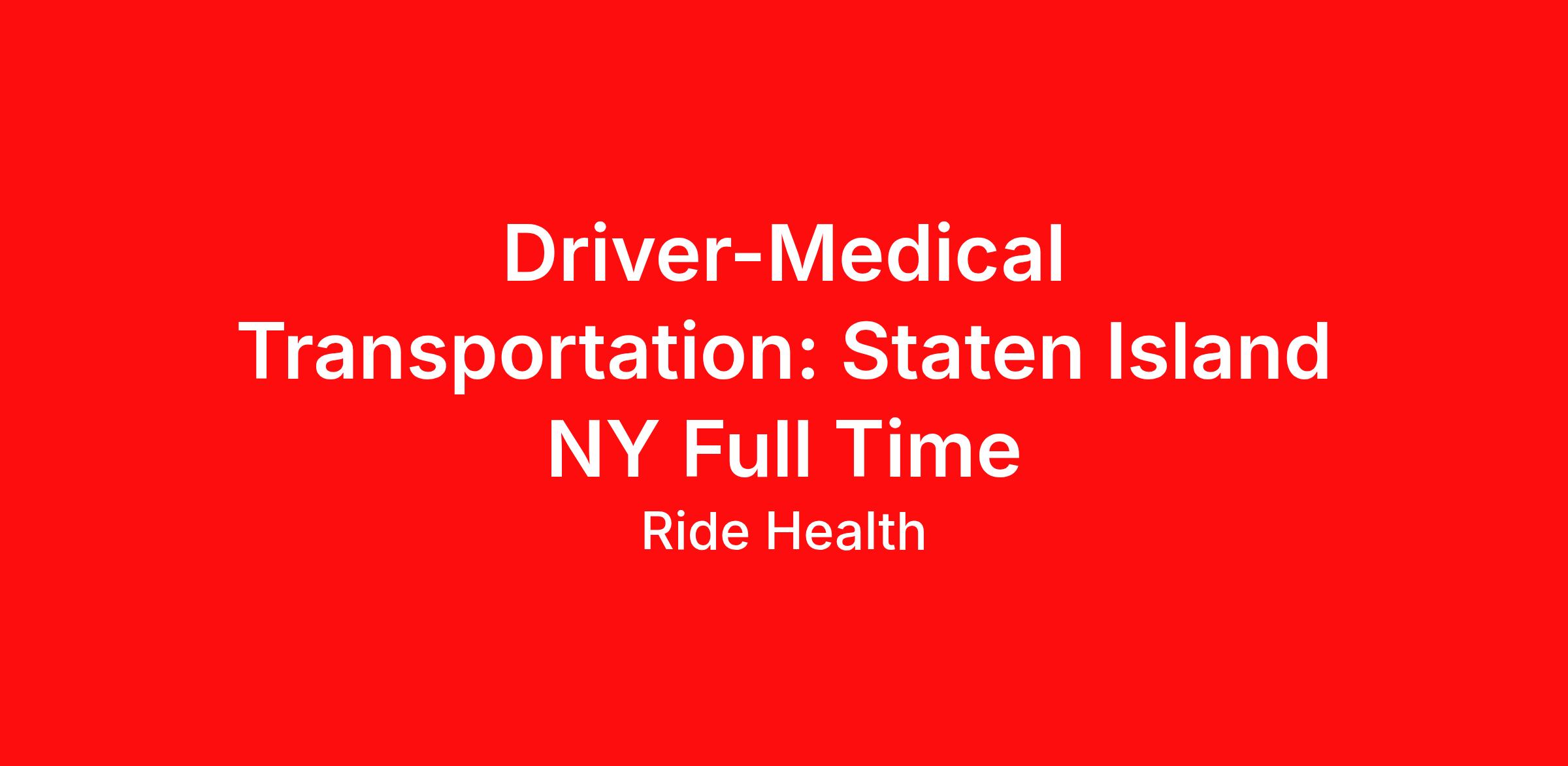 This is a location-specific role supporting Ride Health operations in Staten Island, NY. Applicants must be able to reliably report to Staten Island-based assignments.