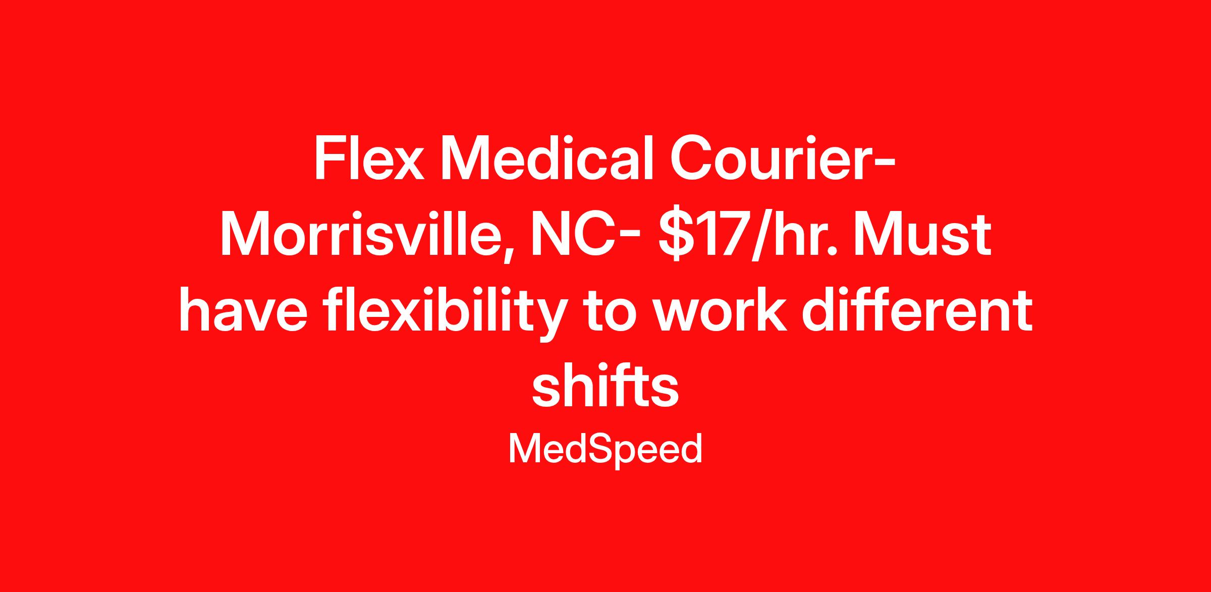 Flex Medical Courier-Morrisville, NC- $17/hr. Must have flexibility to work different shifts