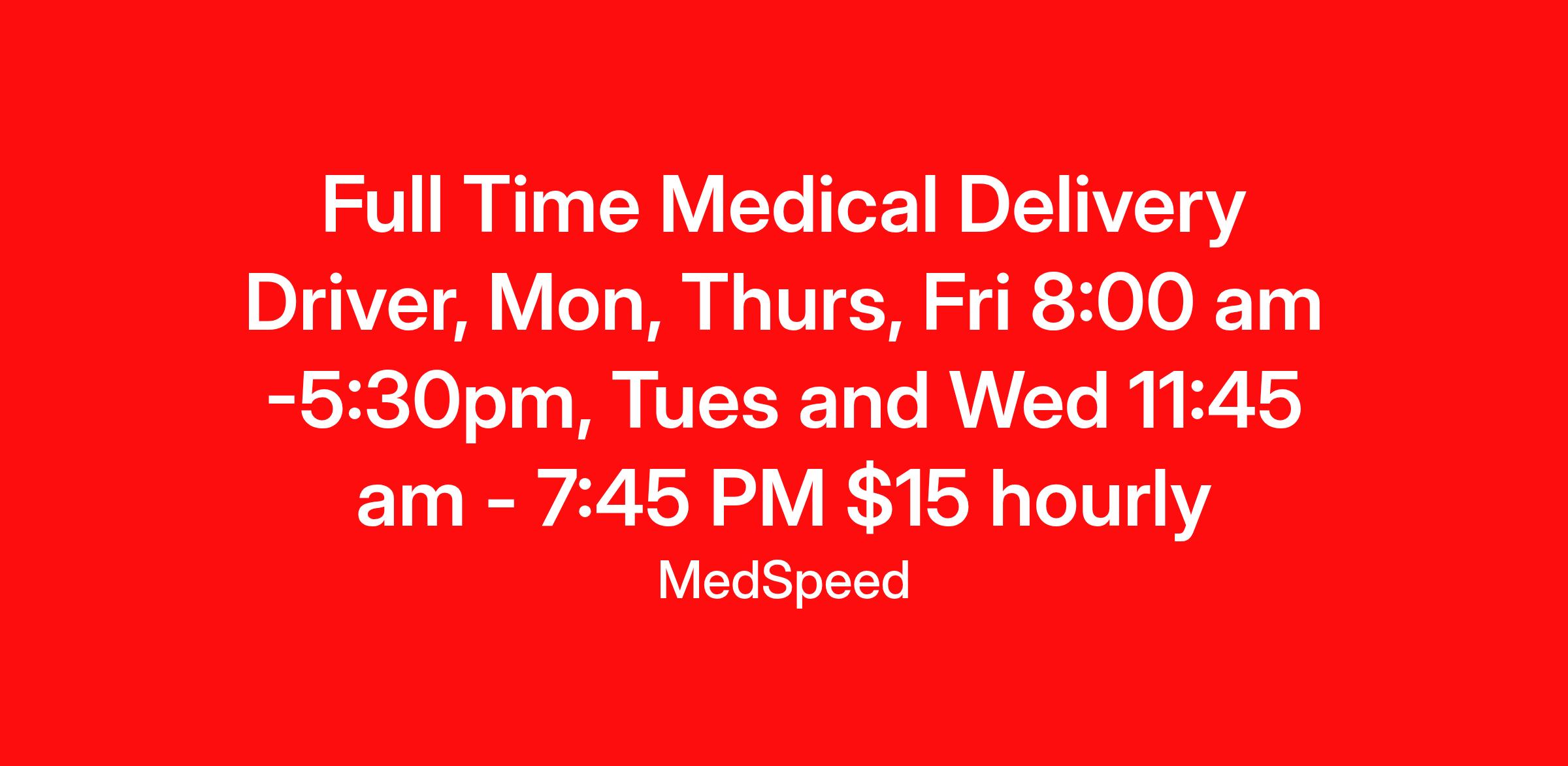 Please beware of fake job offers. MedSpeed only contacts candidates through official channels and never requests personal information outside of our secure application process. All position openings are atwww.medspeed.com