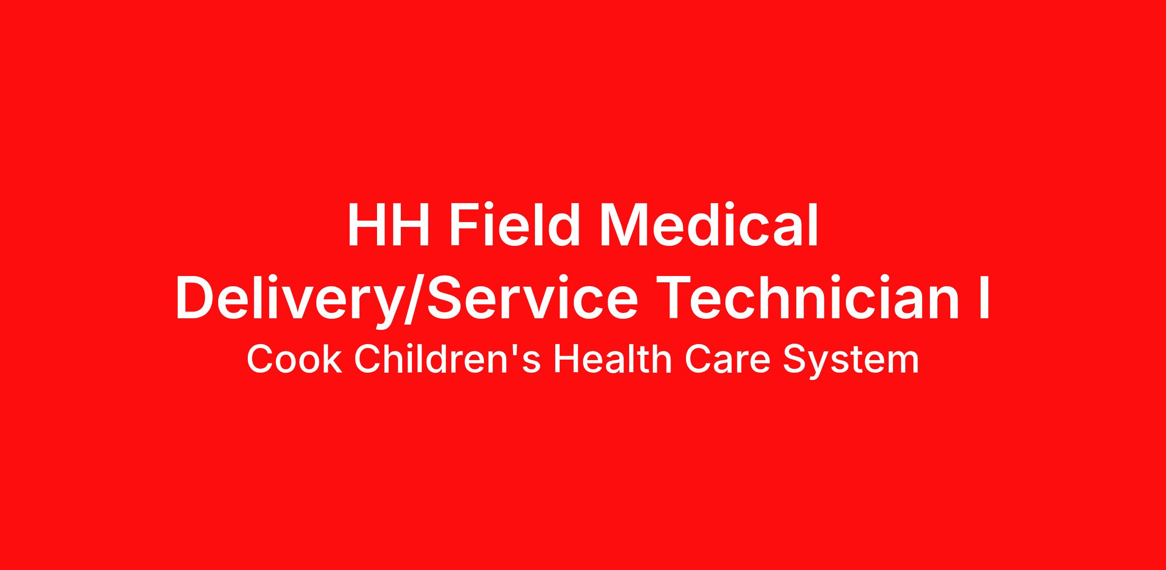 This Field Medical Delivery/Service Technician will deliver supplies and equipment to Cook Children's Home Health customers as assigned and ensure proper set-up and instruction is provided to the patient/caregiver or healthcare provider. The role assists with other warehouse activities such as equipment maintenance, functional checks, and inventory control as directed by the manager.