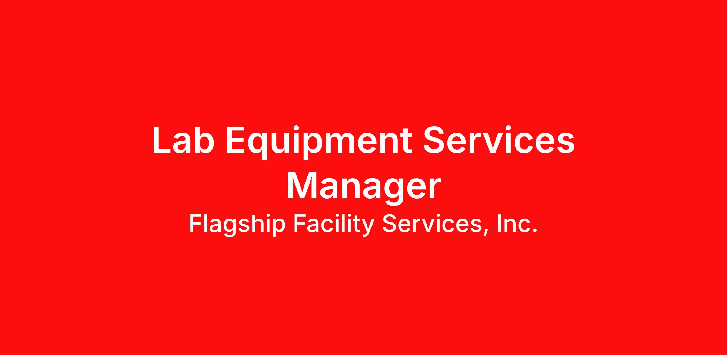 We are looking for ONE (1) Full-Time Equipment services Manager. This full-time position requires you to perform on-site calibration, validations, preventative maintenance and repairs in-house or at our client facilities . The candidate will use their troubleshooting, repair and calibration knowledge to complete the service and strive for total client satisfaction. Flagship Lab Services will provide a vehicle, gas card, phone, tablet, computer and tools once the service technician clears through his/her probationary period.
