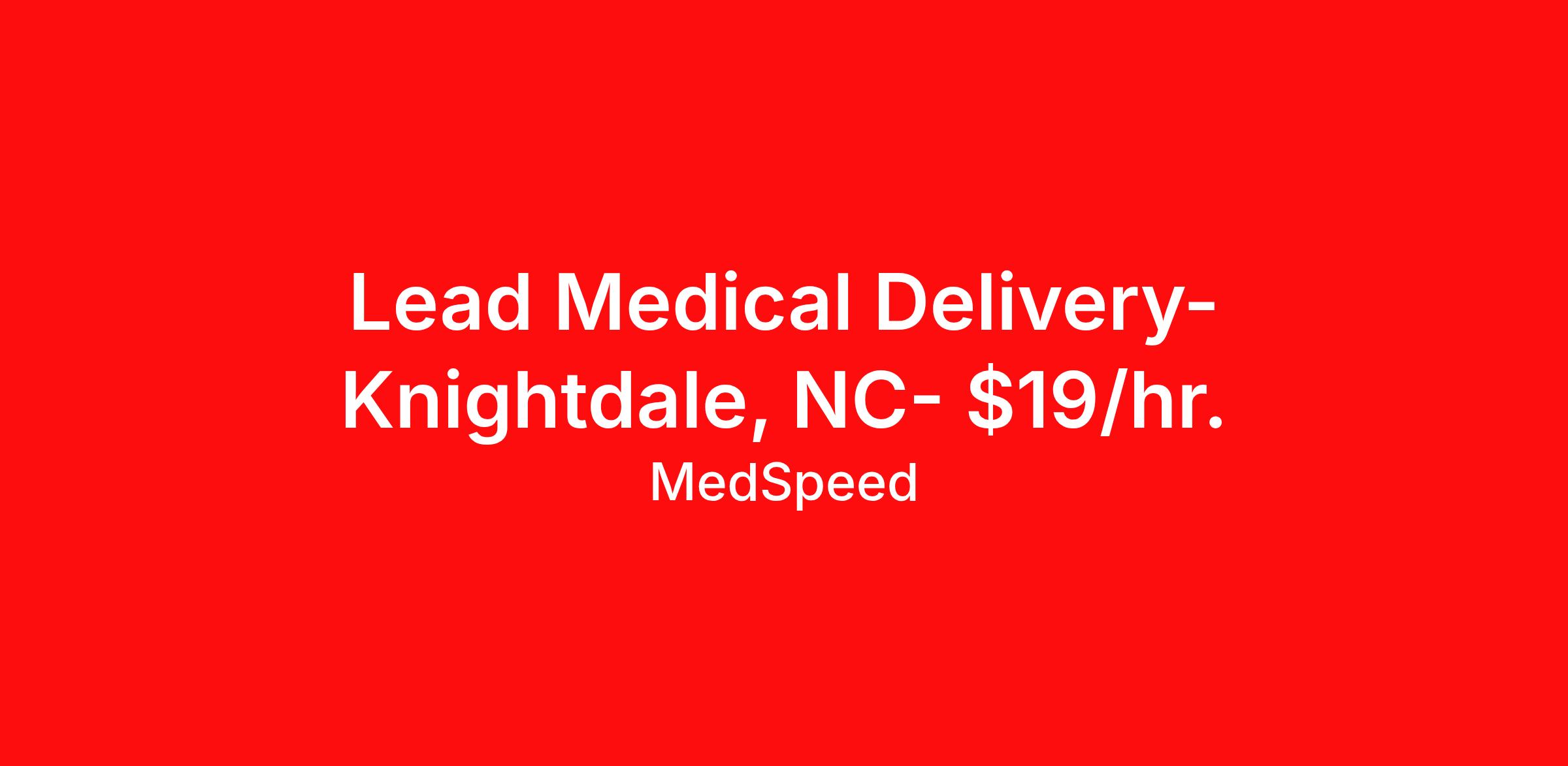 Lead Medical Delivery- Knightdale, NC- $19/hr.