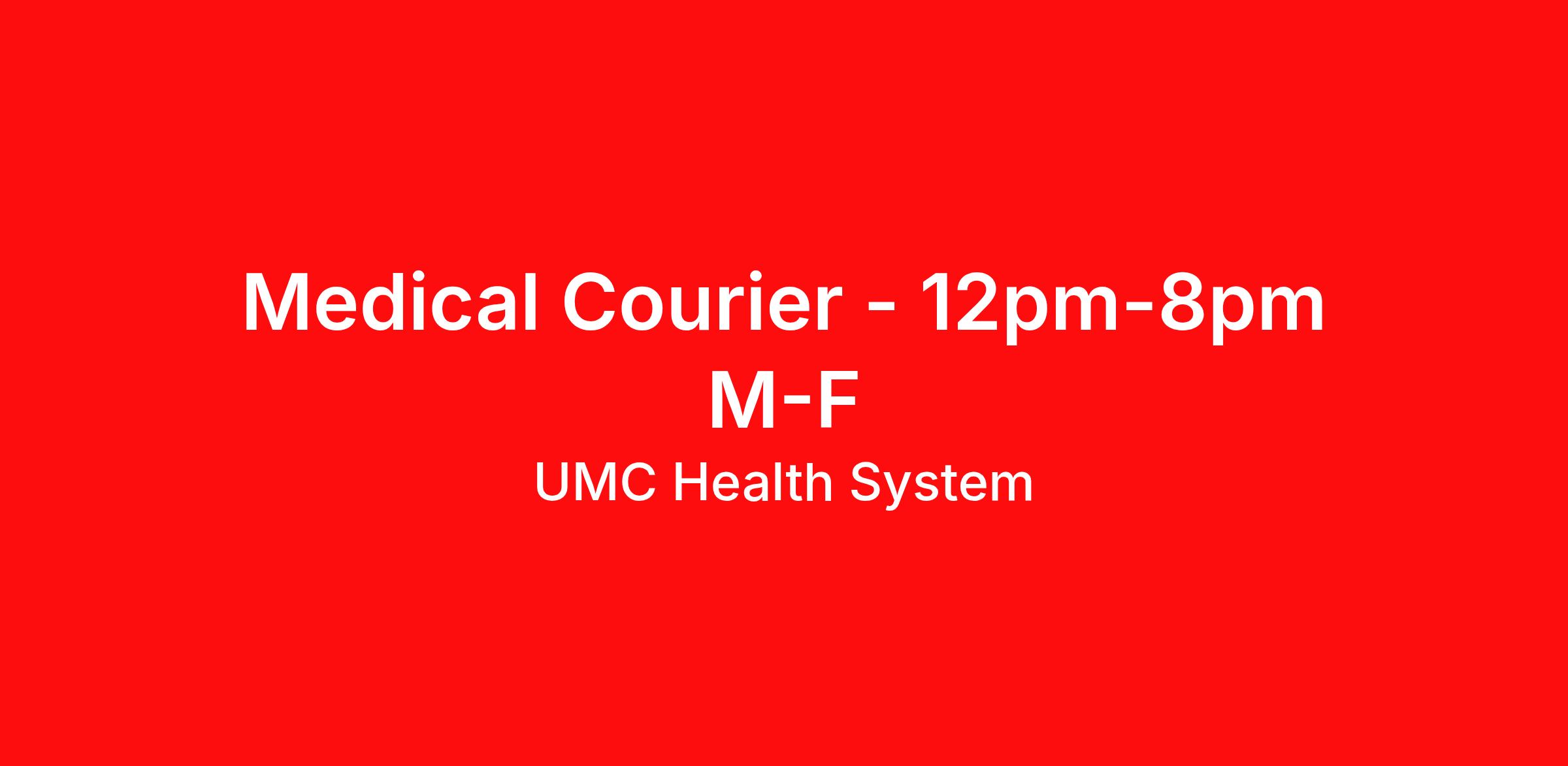 Medical Couriers are responsible for the transportation of medical items to/from labs, hospitals, clinics and other healthcare facilities, or the on-campus transportation of UMC guests.