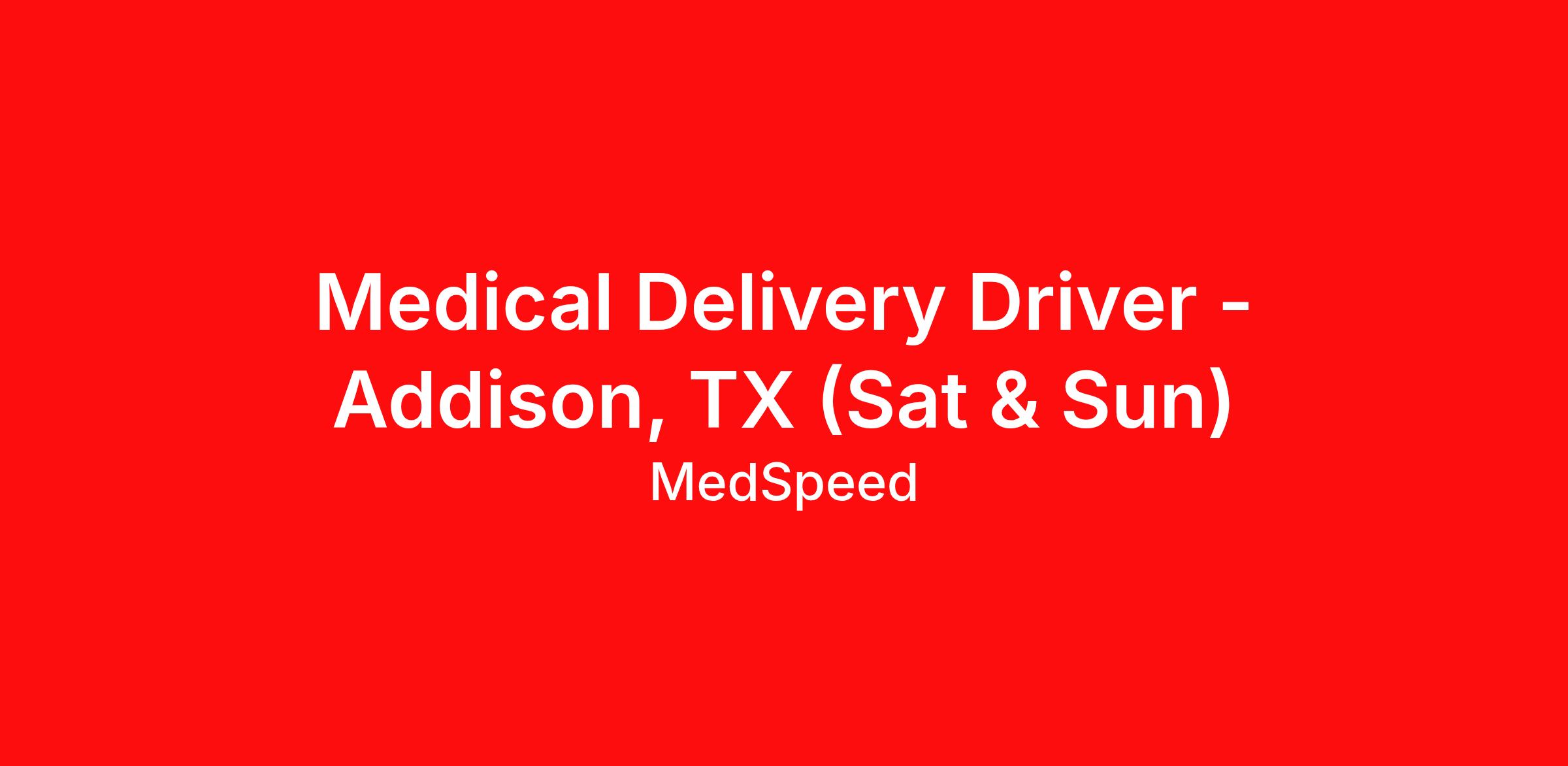 Medical Delivery Driver - Addison, TX (Sat & Sun)