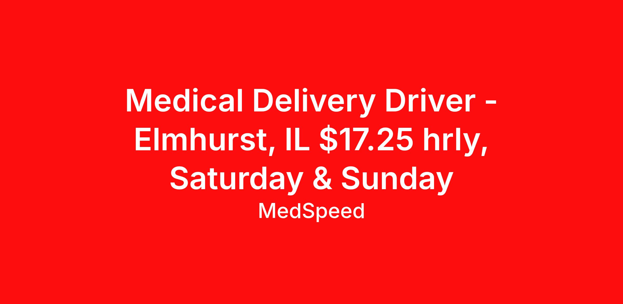 Medical Driver – Elmhurst - $17.25 hourly – PT (Saturday & Sunday)