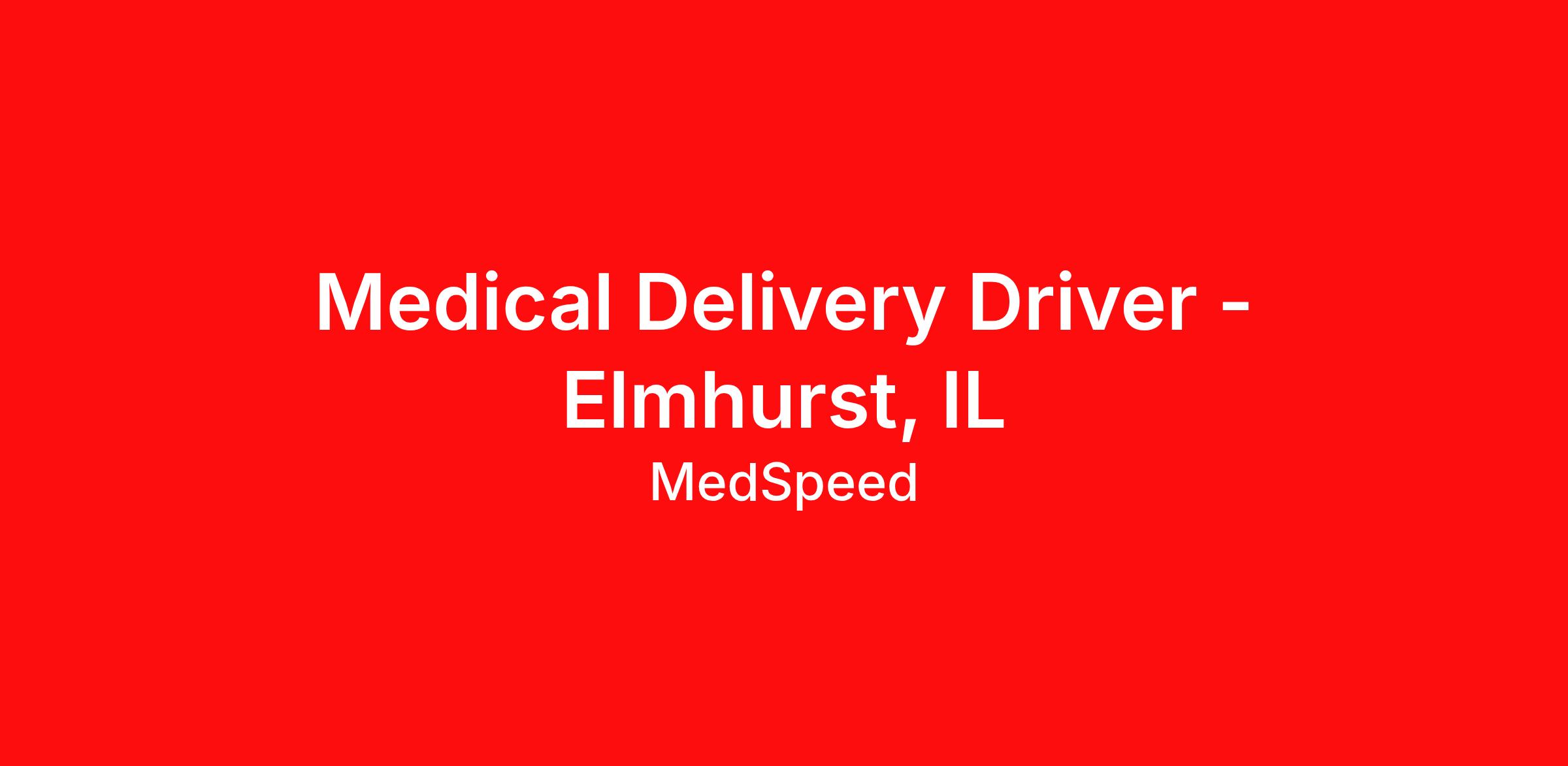 Medical Delivery Driver - Elmhurst, IL