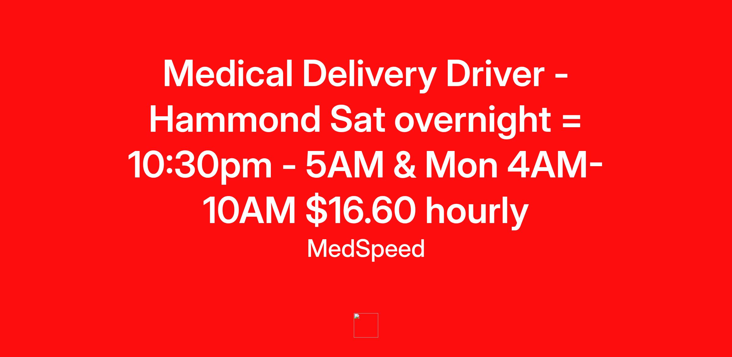 Please beware of fake job offers.MedSpeed only contacts candidates through official channels and never requests personal information outside of our secure application process. All position openings are atwww.medspeed.com