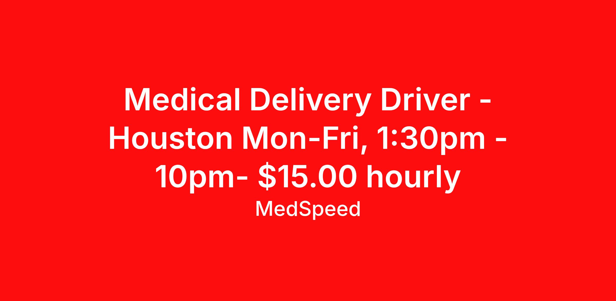 Come join MedSpeed to help us deliver health! MedSpeed is a healthcare logistics company that partners with healthcare organizations throughout your communities to transport a wide range of medical supplies, specimens, and materials. At Medspeed we work as a team, keep our promises and strive to get better every day. We are looking for individuals who believe in and represent those values.