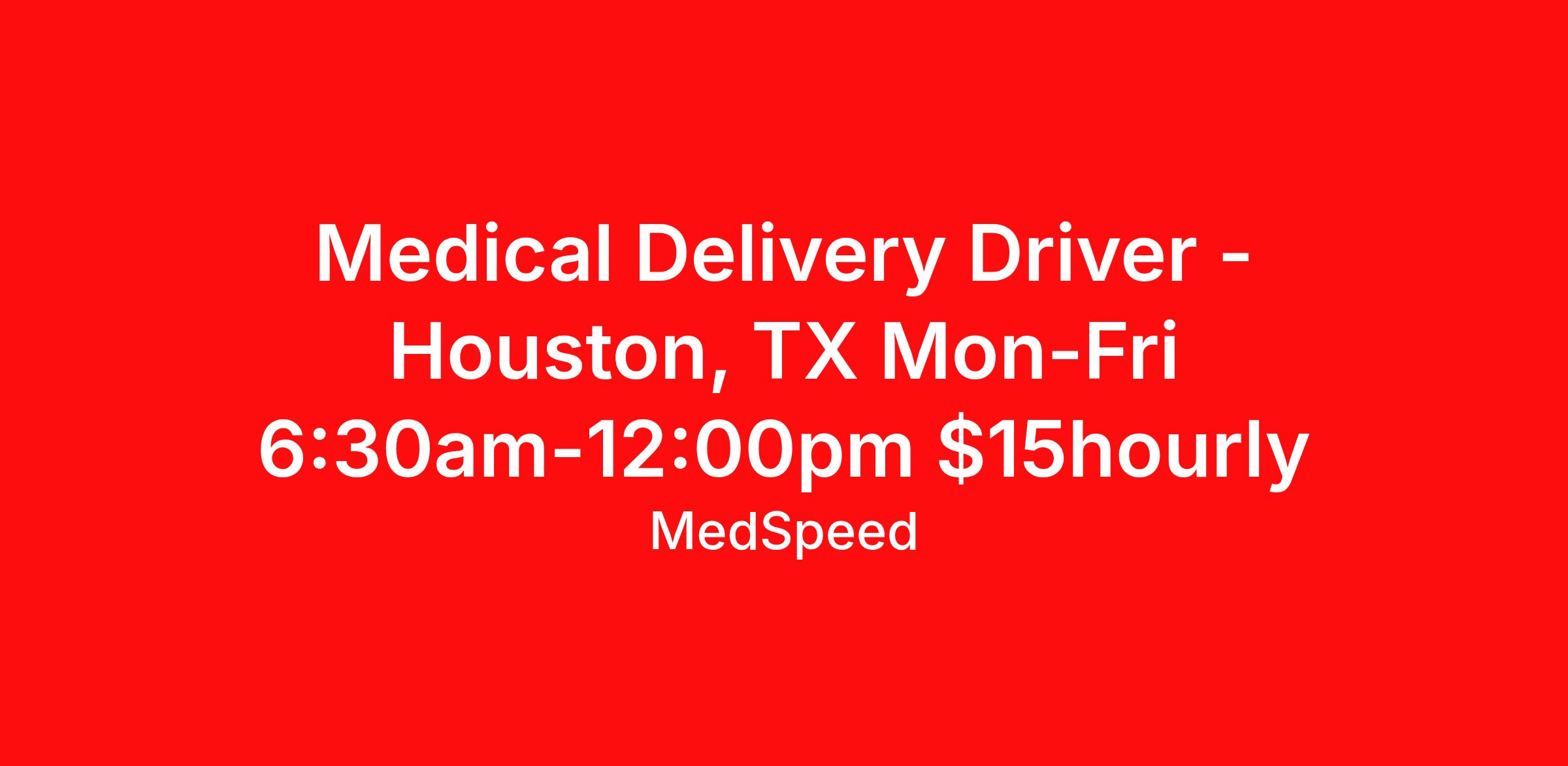 Medical Delivery Driver - Houston, TX Mon-Fri 6:30am-12:00pm $15hourly