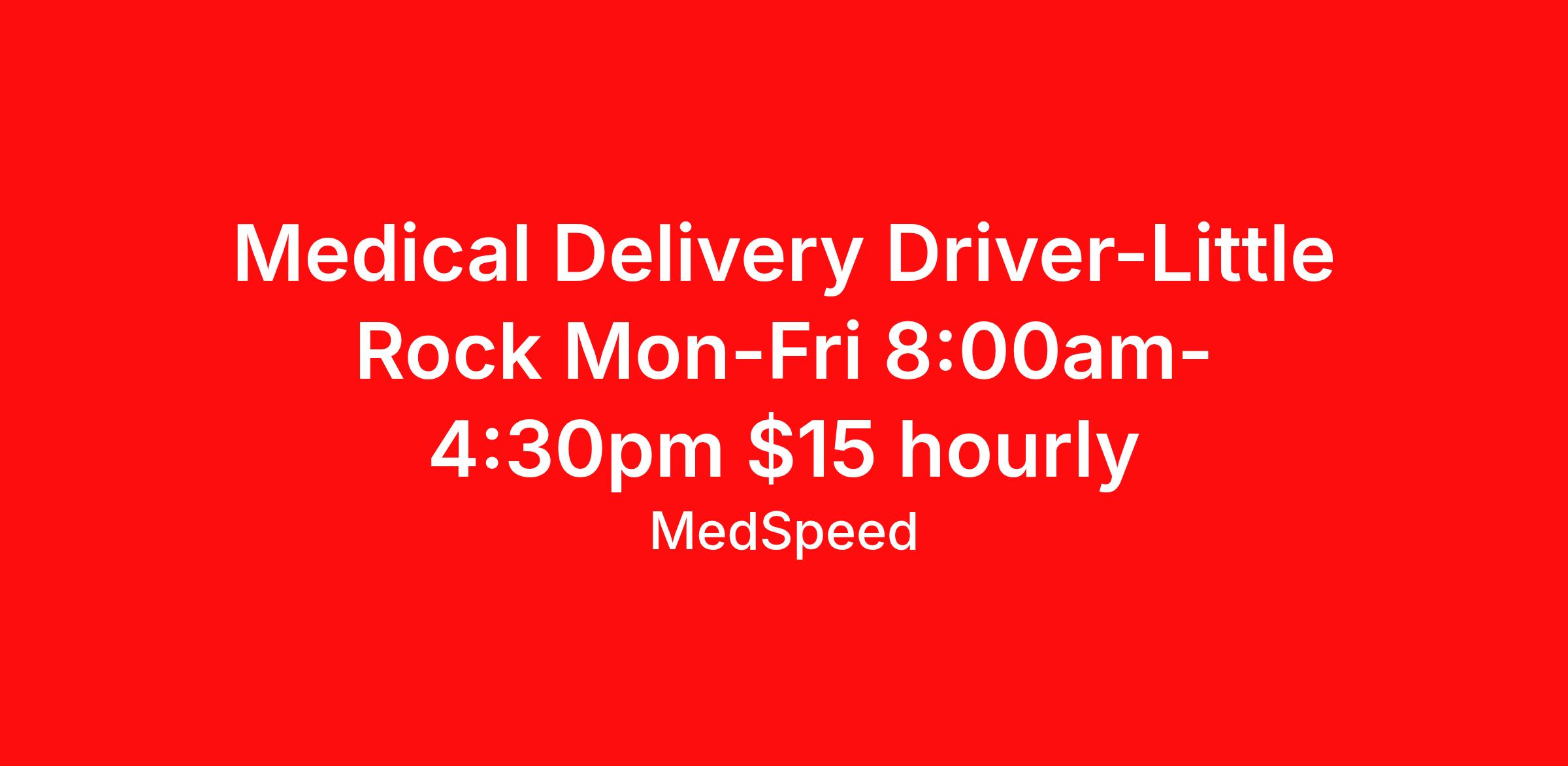 Medical Delivery Driver- Little Rock, AR - $15/hour (Full Time)