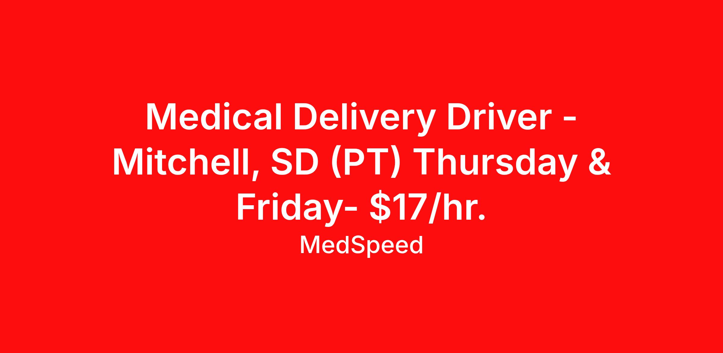 Medical Driver – Mitchell (Part Time) – $17.00/hour
