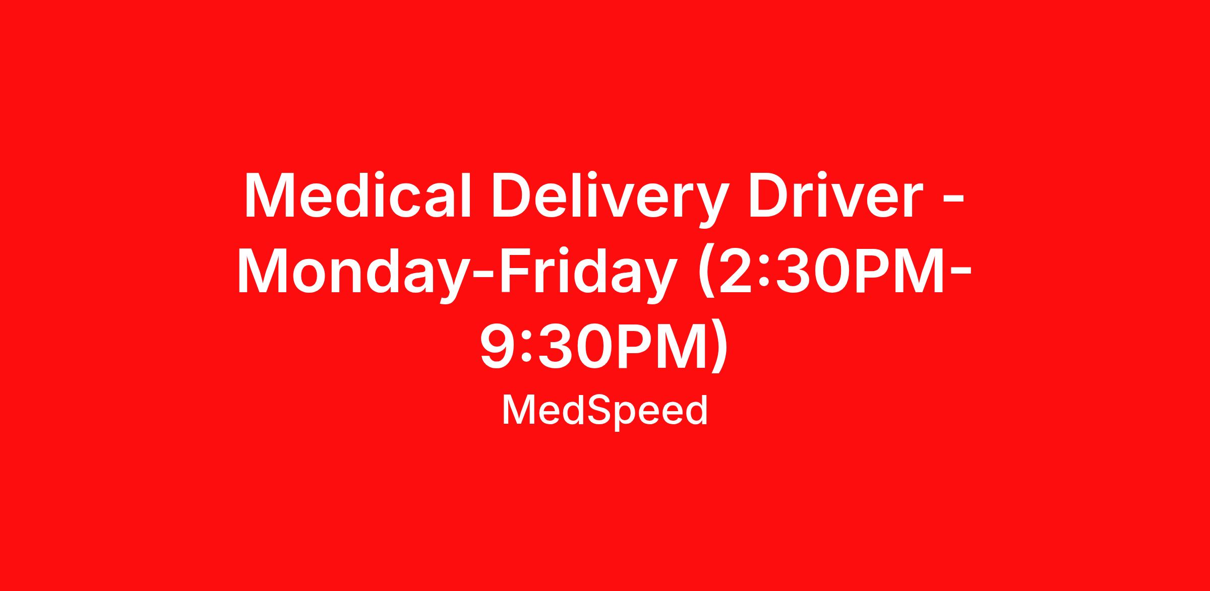 What you will be doing as a MedSpeed Medical Driver: - Most of your day will be spent in a company-owned vehicle, safely driving and transporting lab specimens, medical records, pharmaceuticals, x-rays, hospital supplies, interoffice mail and related materials