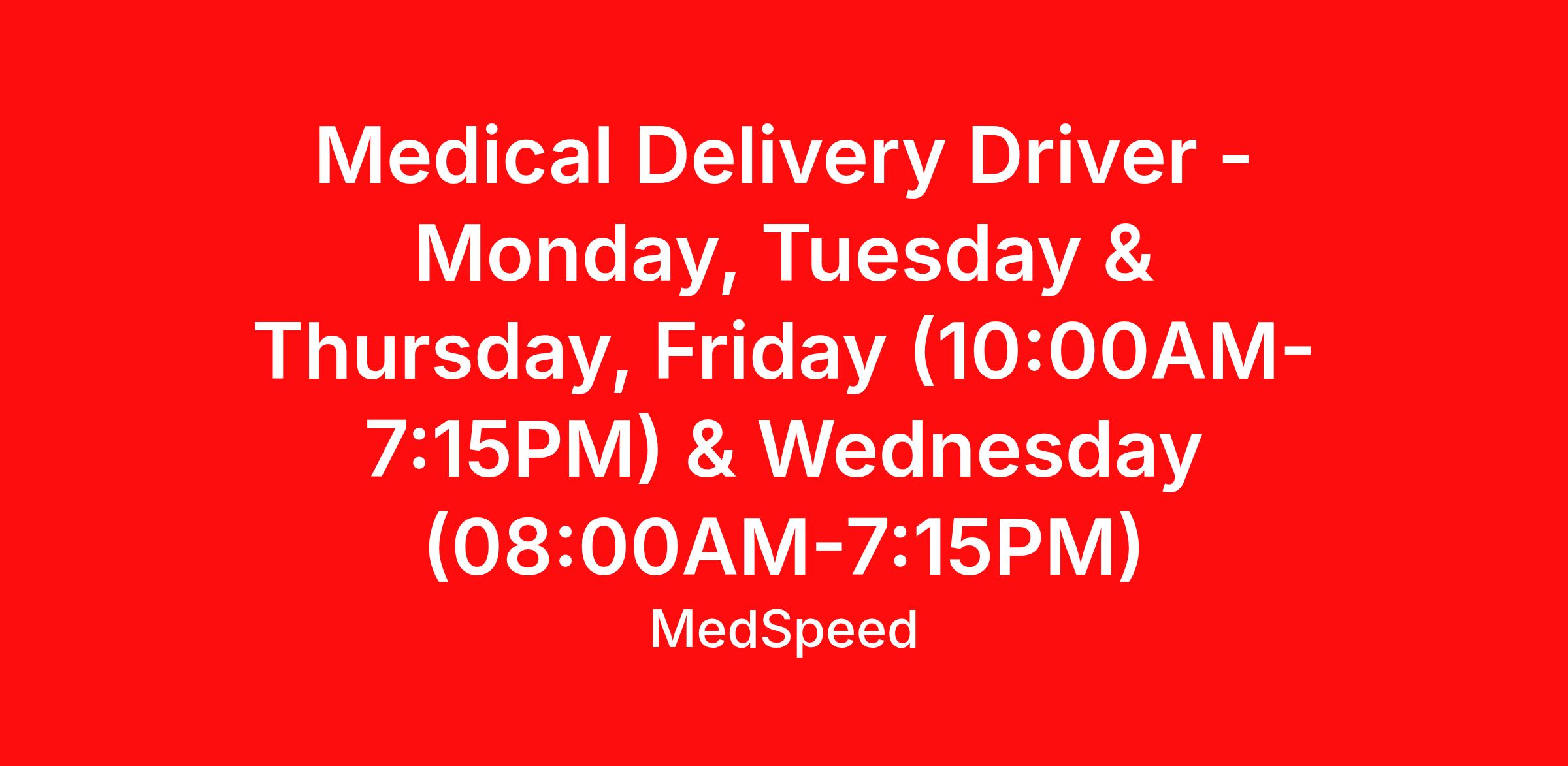 Join MedSpeed and help deliver health! We’re a healthcare logistics company partnering with organizations nationwide to transport vital medical supplies and specimens. At MedSpeed, teamwork, integrity, and growth drive everything we do. If you’re passionate, driven, and ready to make a real impact, we want to hear from you. Today, we have a nationwide presence with locations across the U.S., yet we’ve never lost the entrepreneurial spirit and close-knit culture that defined us from day one.