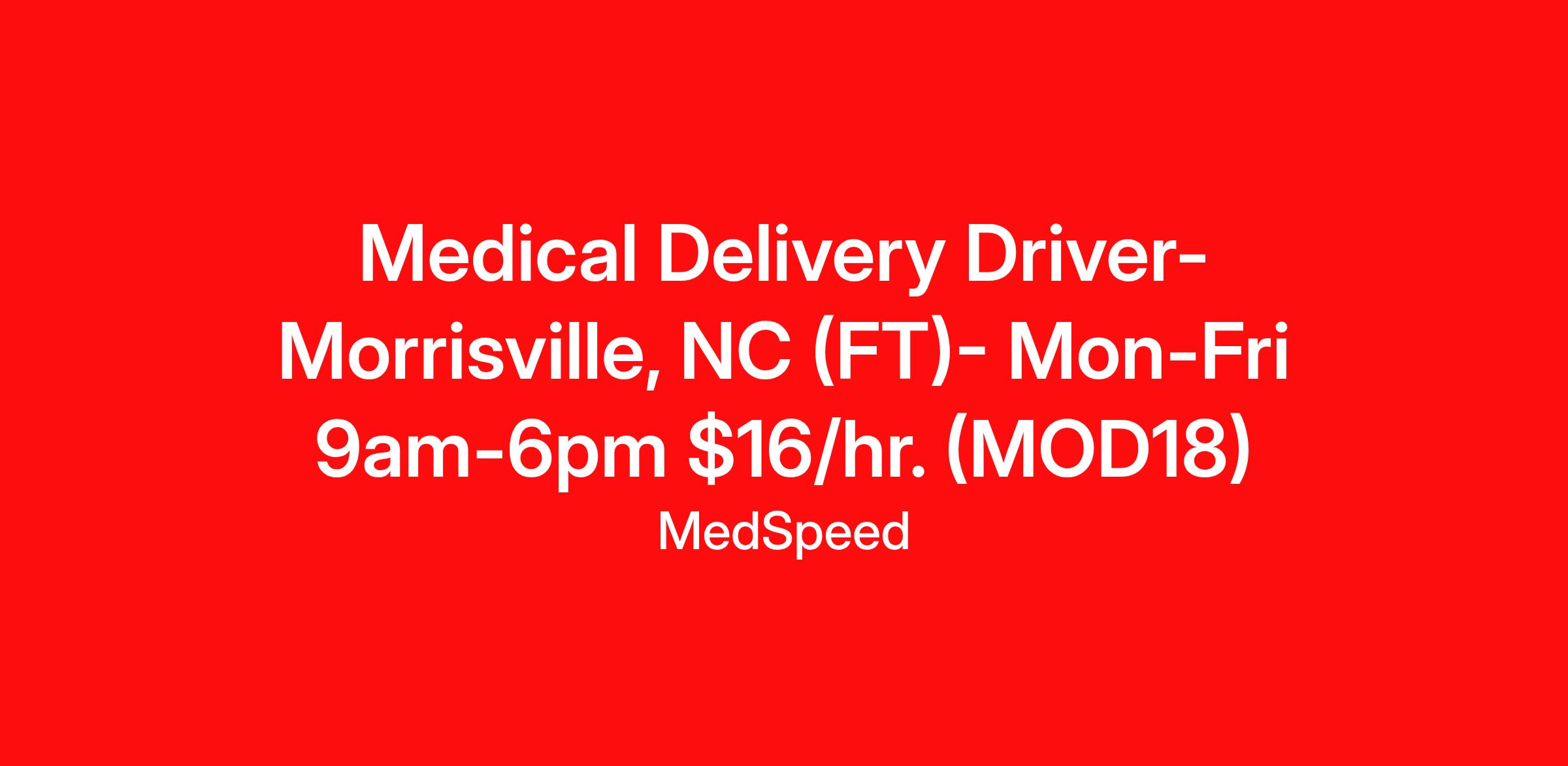 Medical Delivery Driver- Morrisville, NC (FT )-$16/hr. (MOD15)