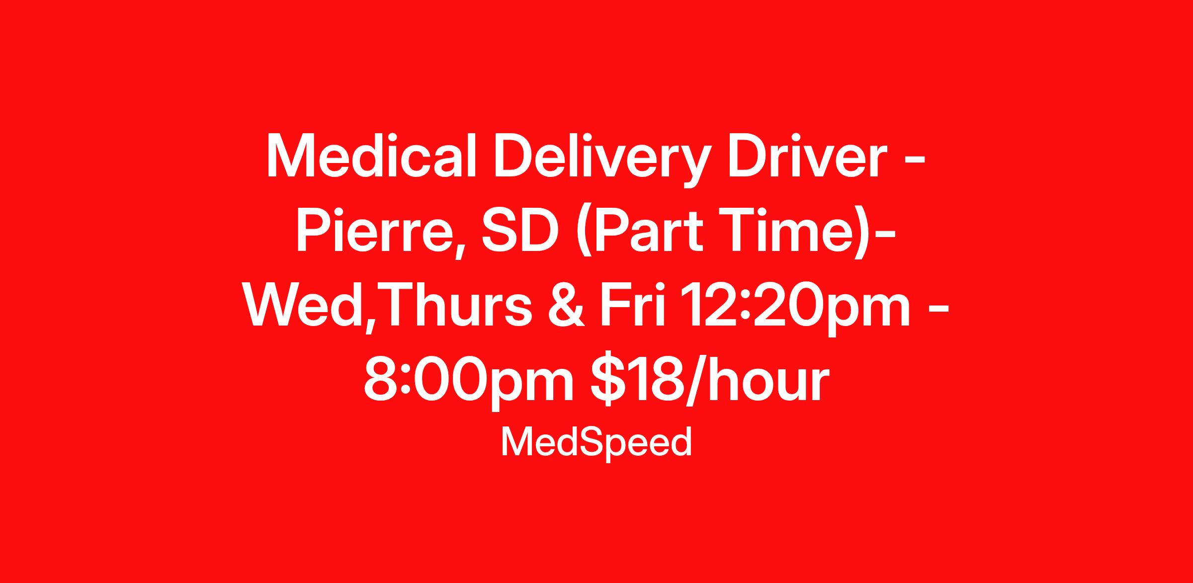 Medical Delivery Driver – Pierre, SD - $18.00/hr. – Part Time