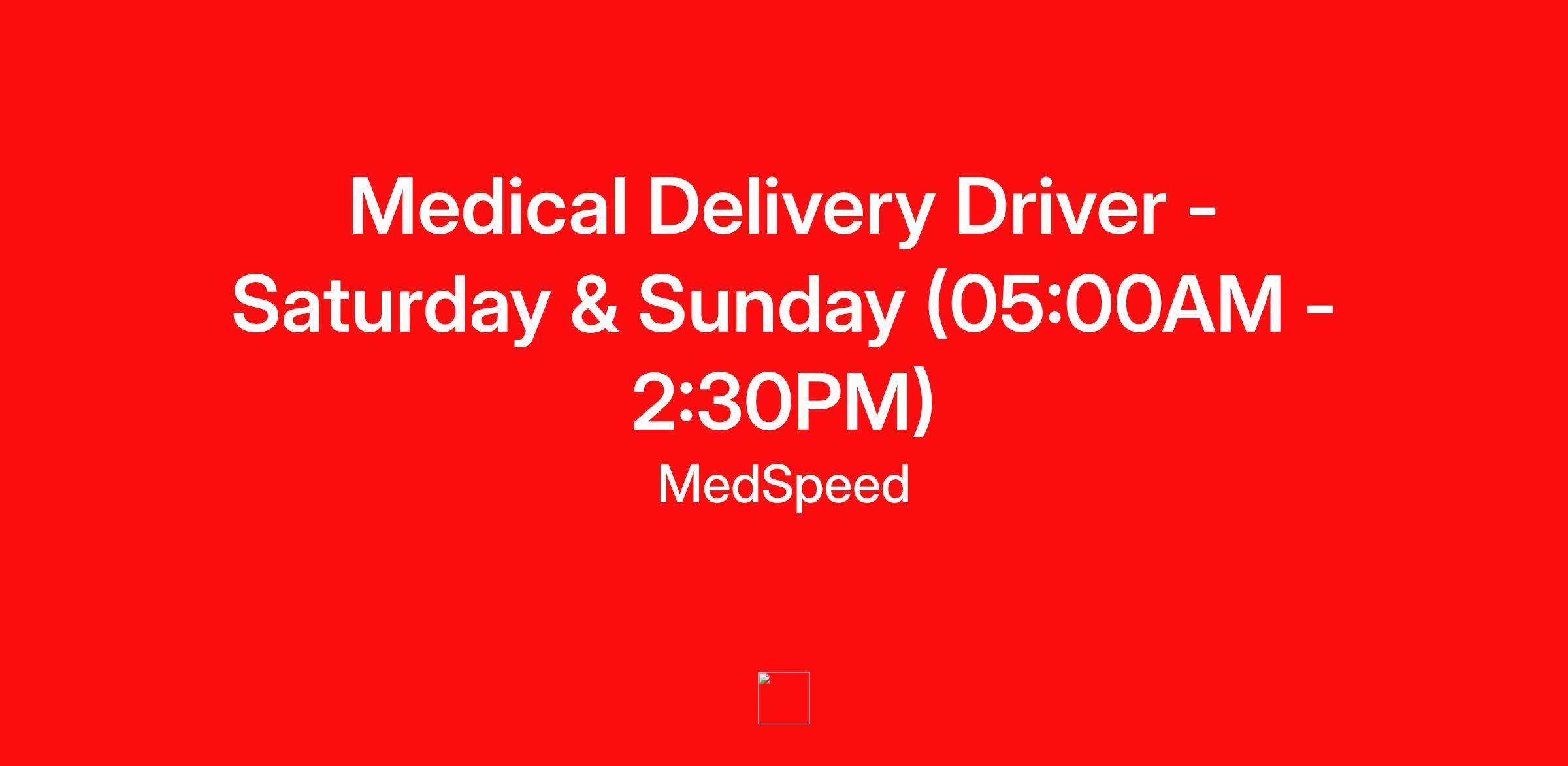 Medical Delivery Driver - Saturday & Sunday (05:00AM - 2:30PM)