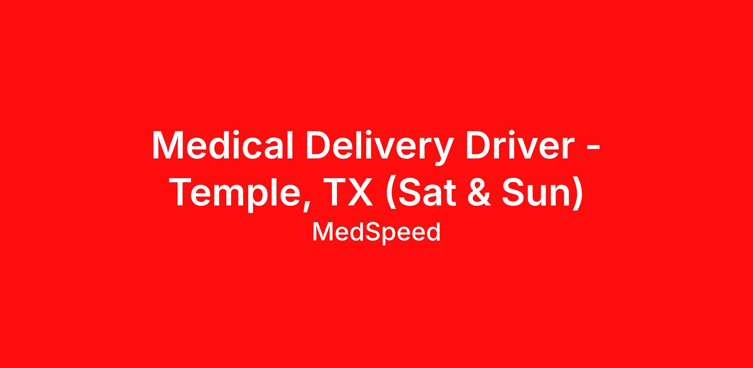 Medical Delivery Driver - Temple, TX (Sat & Sun)