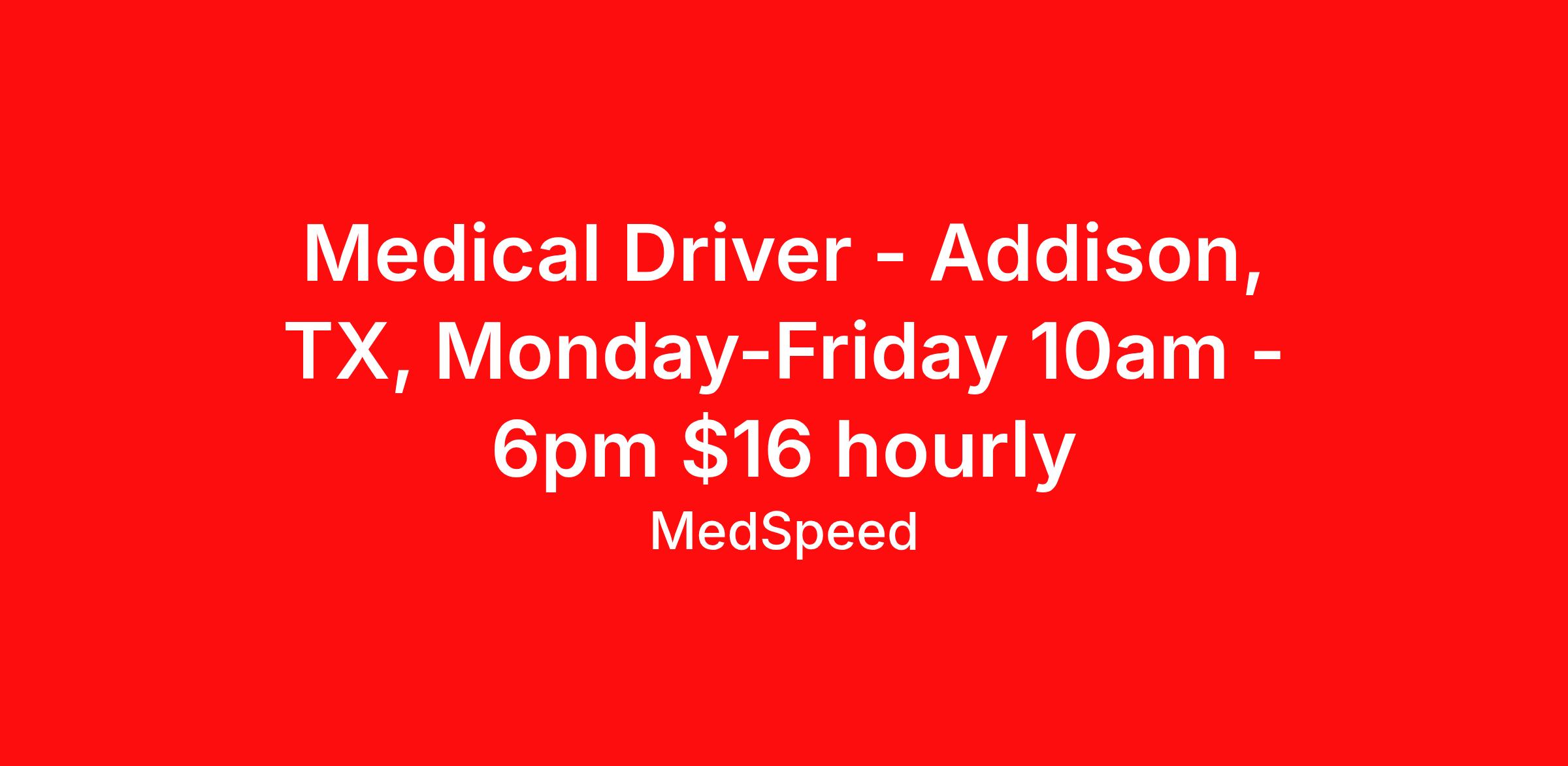 What you will be doing as a MedSpeed Medical Driver: - Most of your day will be spent in a company-owned vehicle, safely driving and transporting lab specimens, medical records, pharmaceuticals, x-rays, hospital supplies, interoffice mail and related materials