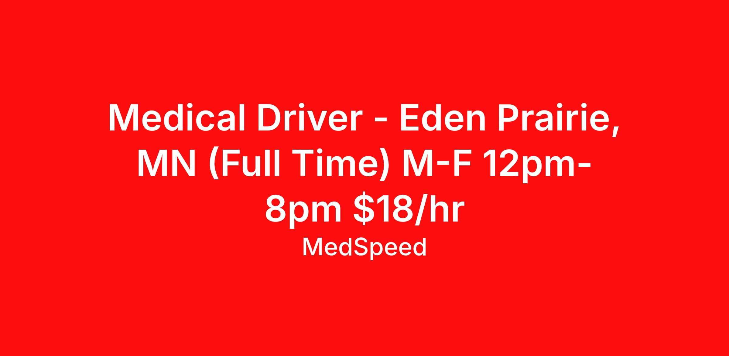 Medical Driver - Eden Prairie, MN - $18.00/hr - Full Time