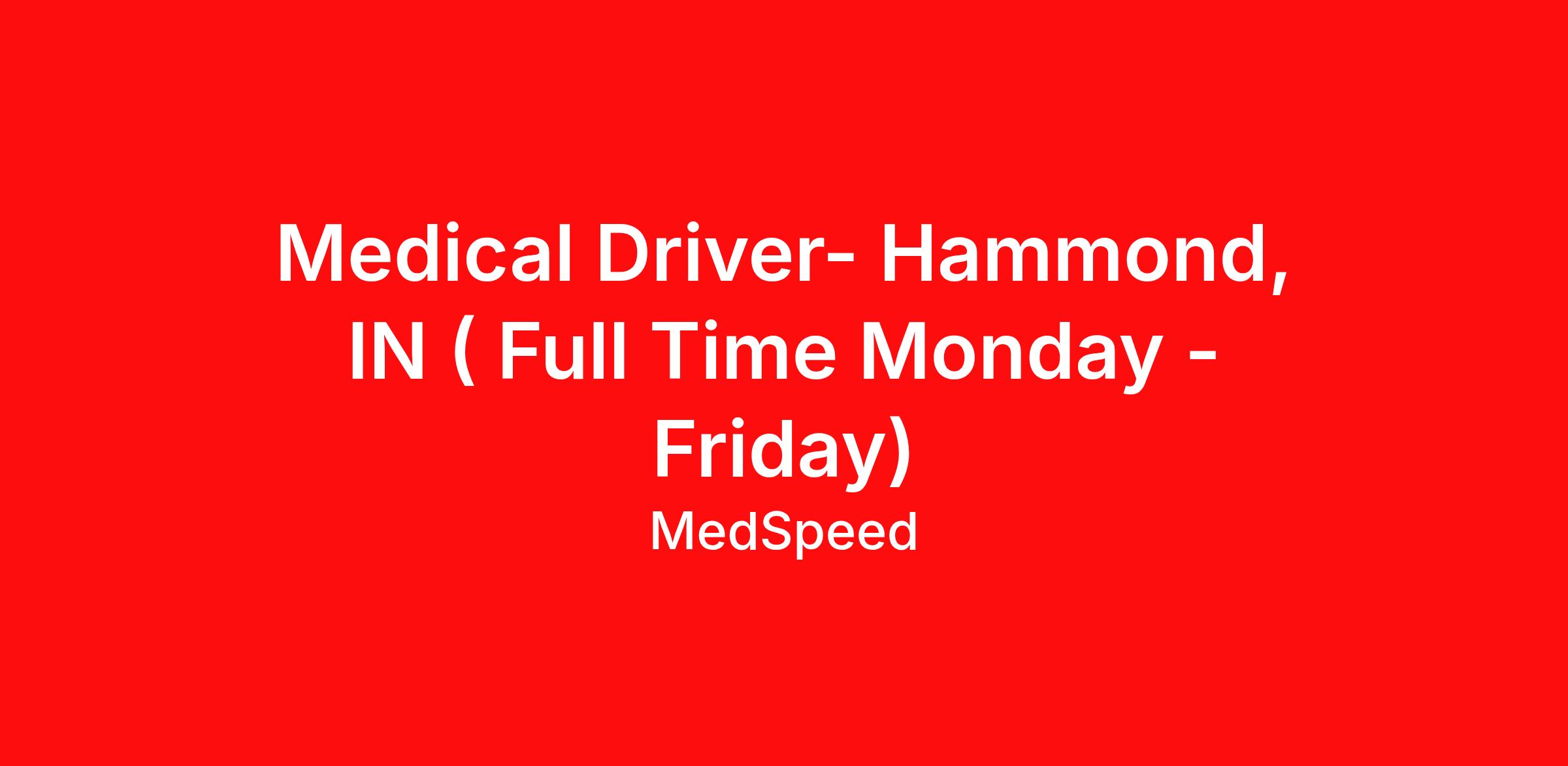 Medical Delivery Driver – Hammond, IN - $15.00/hr. - Full Time