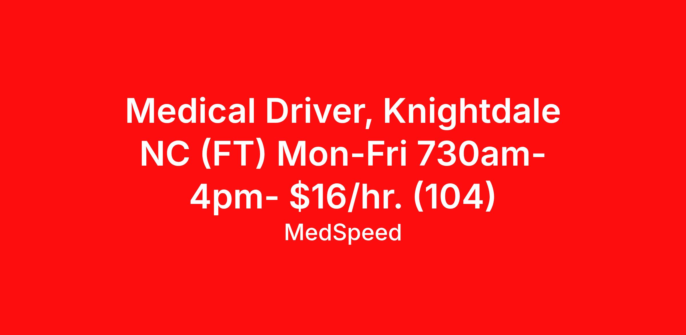 Medical Driver Knightdale NC (FT)-$16/hr.