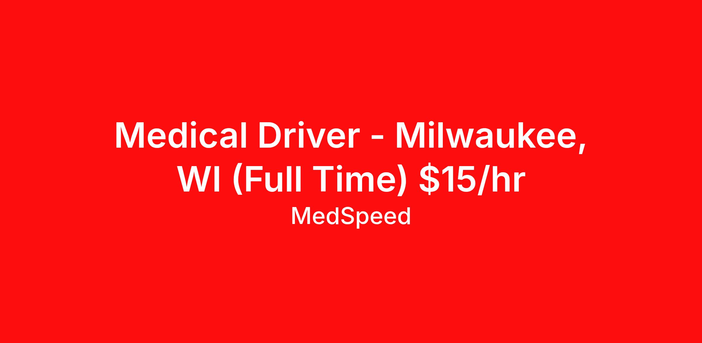 Medical Driver - Milwaukee, WI (Full Time) $15/hr