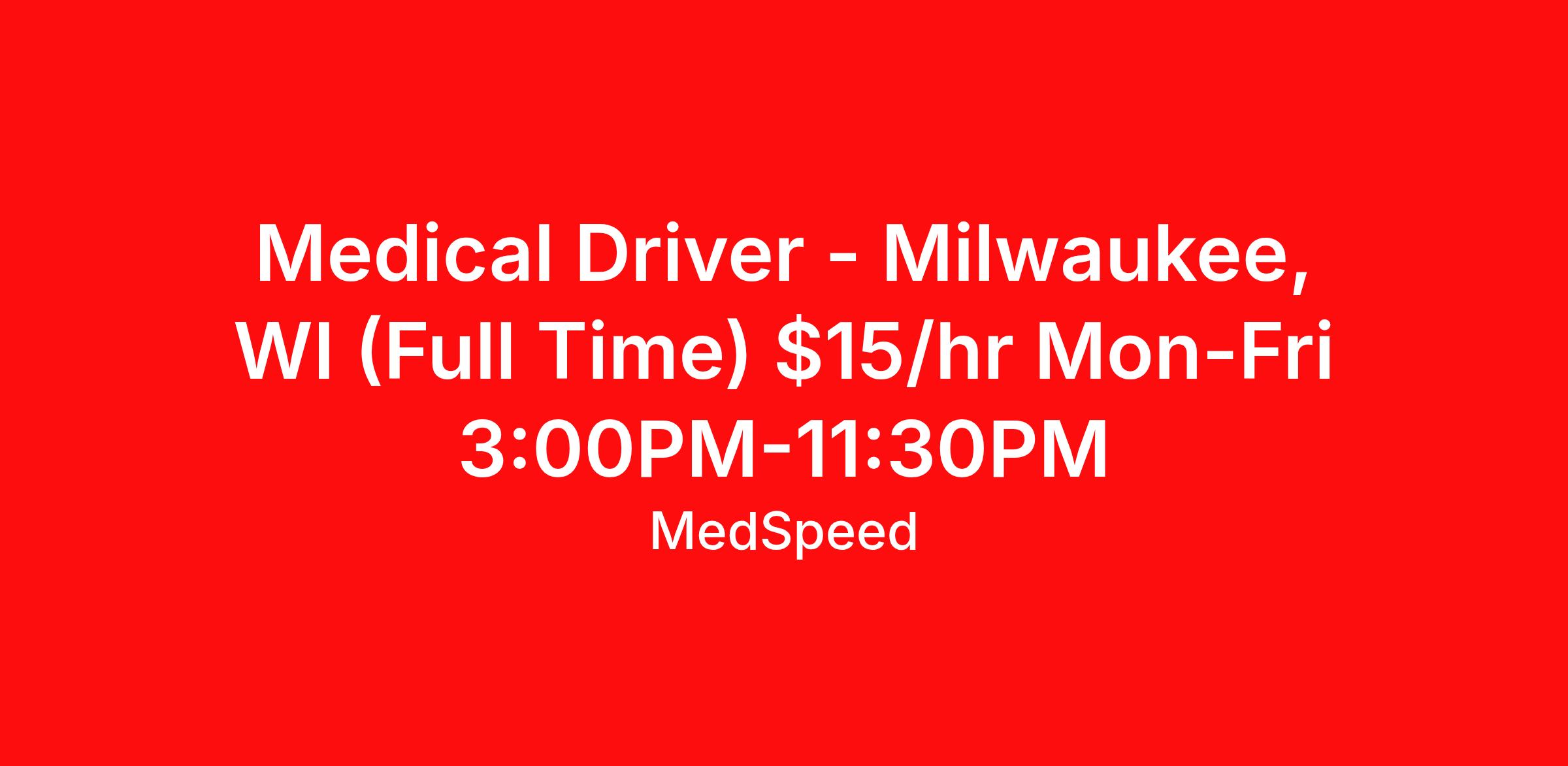 Medical Driver - Milwaukee, WI (Full Time) $15/hr