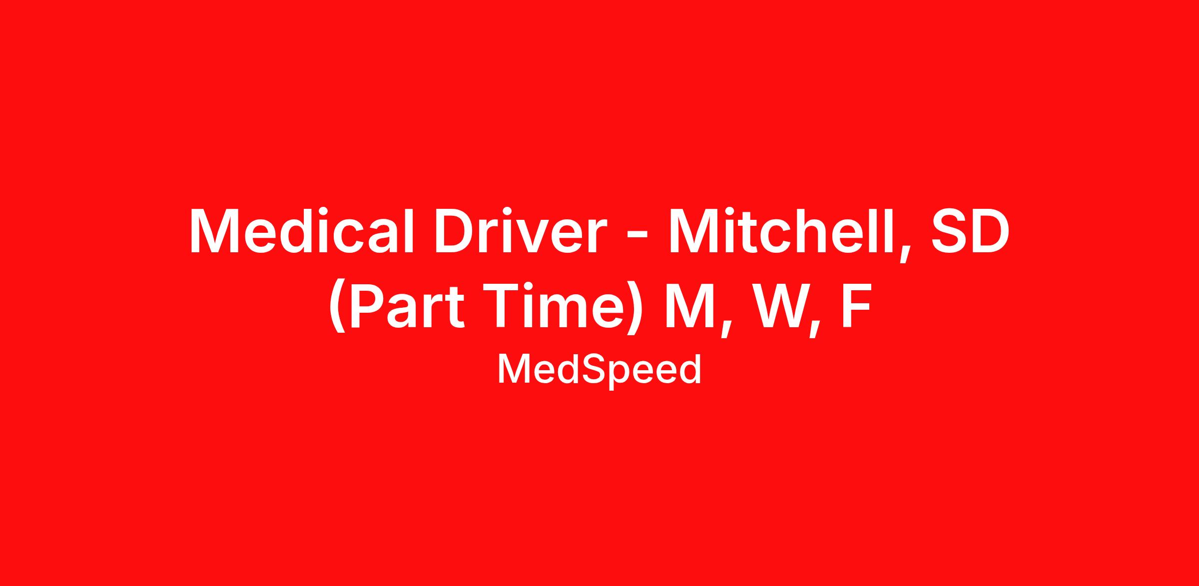Medical Driver – Mitchell, SD (Part Time) $17.00/hour