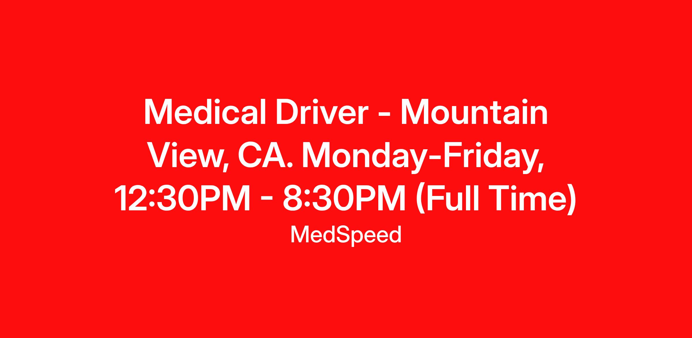 Medical Driver – Mountain View, CA – $22.50 - $24.05/hr – Full Time