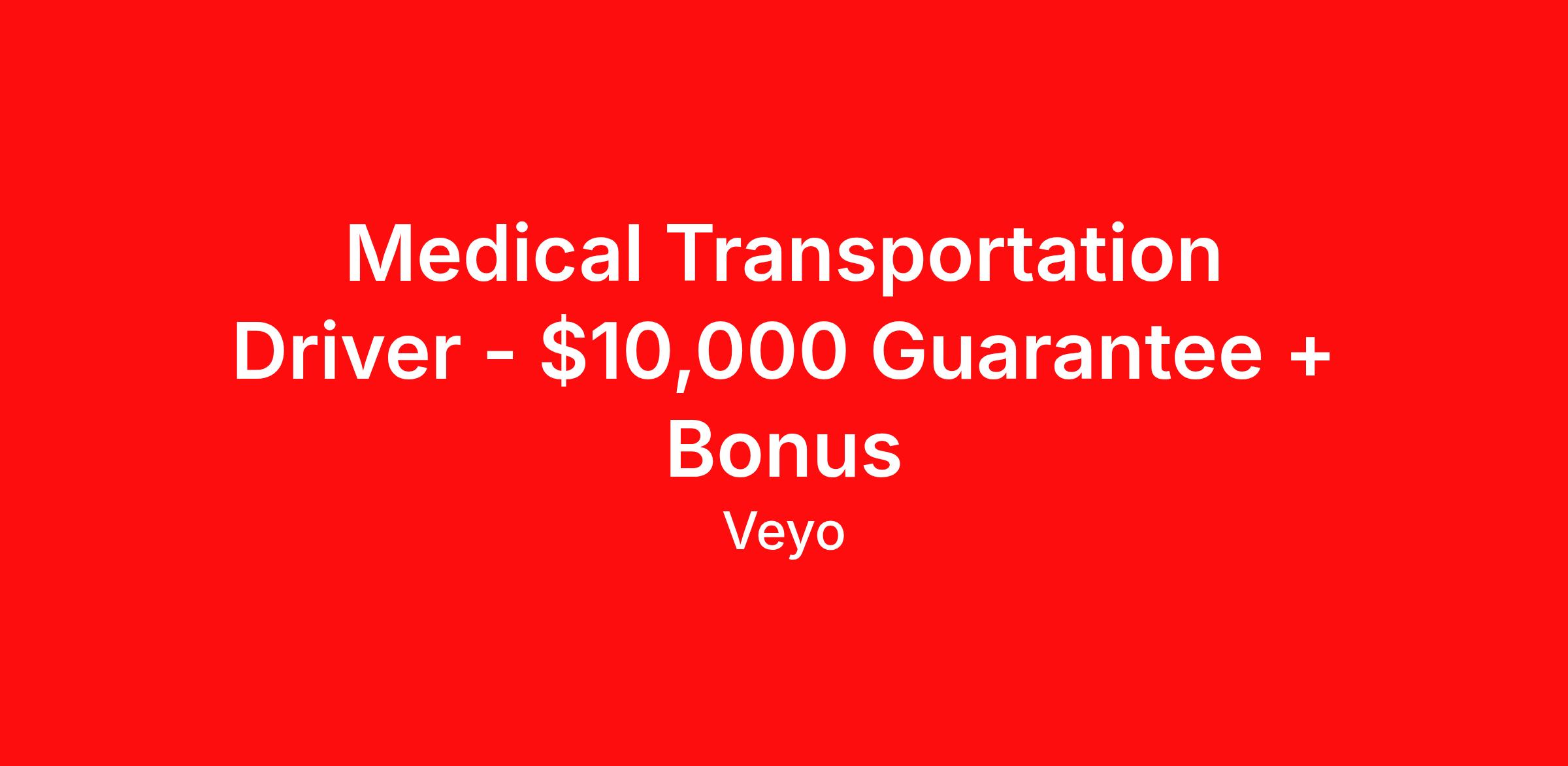 Medical Transportation Driver - $10,000 Guarantee + Bonus