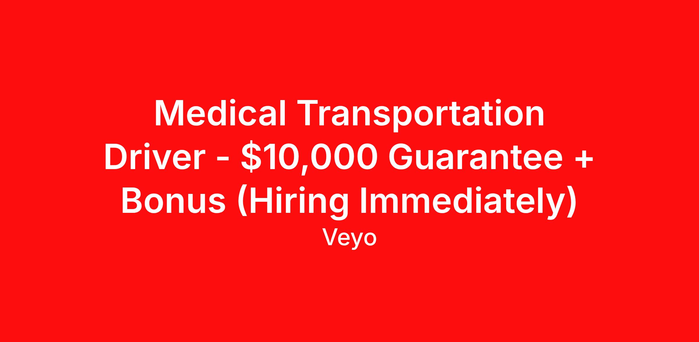 Medical Transportation Driver - $10,000 Guarantee + Bonus (Hiring Immediately)