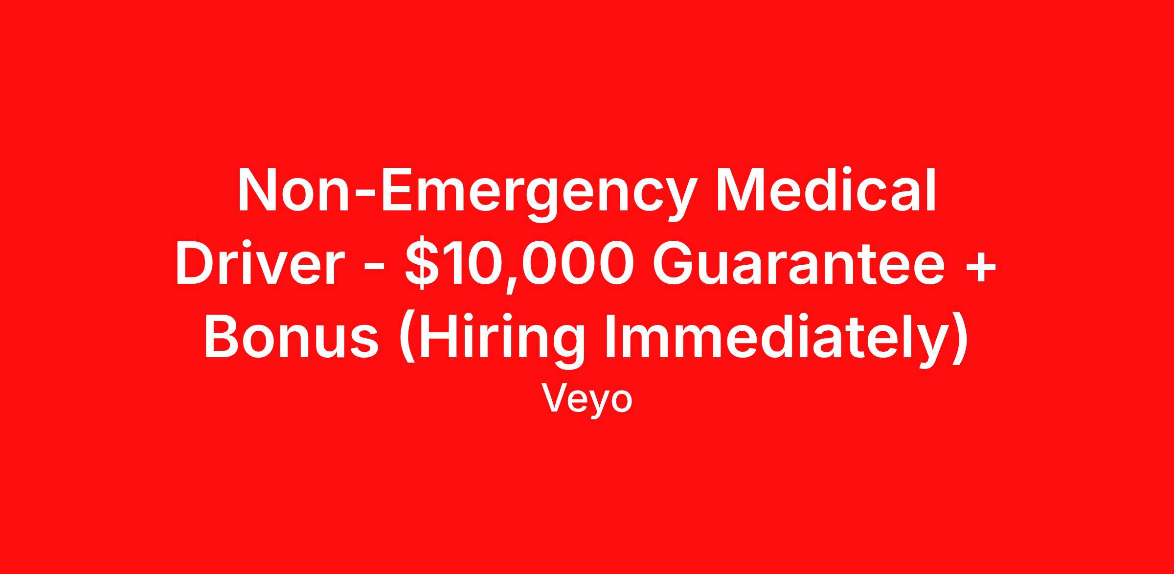 Non-Emergency Medical Driver - $10,000 Guarantee + Bonus (Hiring Immediately)