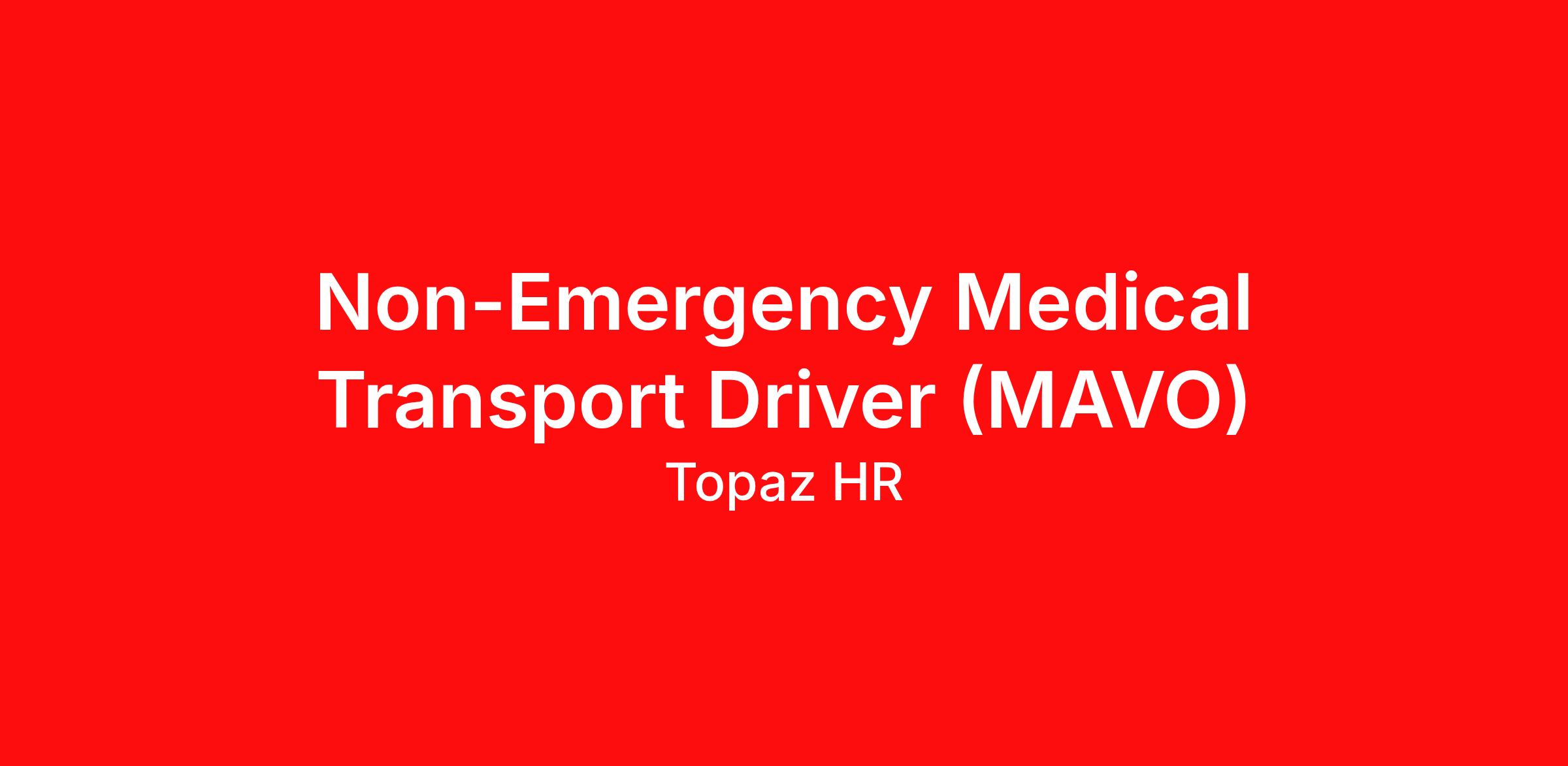 Position Overview Topaz HR is seeking dependable and compassionate Non-Emergency Medical Transport Drivers (MAVO) on behalf of our client. Drivers will be responsible for safely transporting patients to and from medical appointments and healthcare facilities while providing courteous assistance throughout the transport process. This position requires individuals who are reliable, patient-focused, and comfortable assisting individuals with mobility needs. Drivers operate wheelchair-accessible vehicles and ensure passengers are safely secured during transport. Schedules vary based on patient appointments and daily routing needs. Shifts may begin as early as 5:00 AM and extend as late as 10:00 PM, depending on scheduled trips.