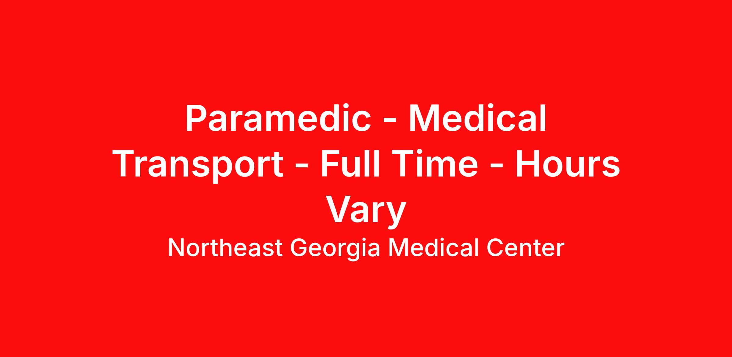 Under the direct supervision of the Medical Transport Supervisor. Paramedic should possess the knowledge of treatment and stabilization of all patients as well as all definitive techniques within the limitations of their certification as governed by the Department of Public Health and scope of practice. This position will care for patients in the neonate, infant, child, adolescent, adult and geriatric age groups. Employee performs clinical duties in accordance with the State of Georgia and NGHS policies and procedures.