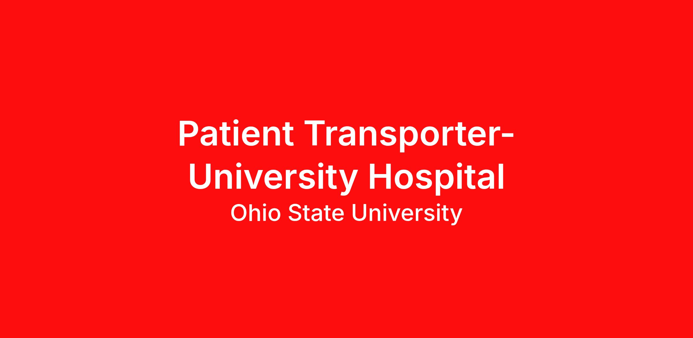 Job Description Under general supervision, transports patients of The Ohio State University Medical Center as assigned; maintains patient transport carts, related mobile equipment and work areas. Transports patients as assigned by cart, bed, wheelchair, and/or motor vehicle to various areas of the Medical Center. Observes patients and reports any unusual or adverse change immediately to appropriate staff. Converses with patients to convey a friendly and positive atmosphere. Assists with patient handling as required. Maintains patient transport carts and wheelchairs for cleanliness and safe operating conditions; prepares carts and wheelchairs for transport on lift system; reports defective transportation equipment. Maintains clean environment in exam rooms, assists with cleaning floors and equipment. Assists in the removal of items, used and unused, and soiled linens and trash; inventories and restocks supplies and linens. Other duties as assigned.