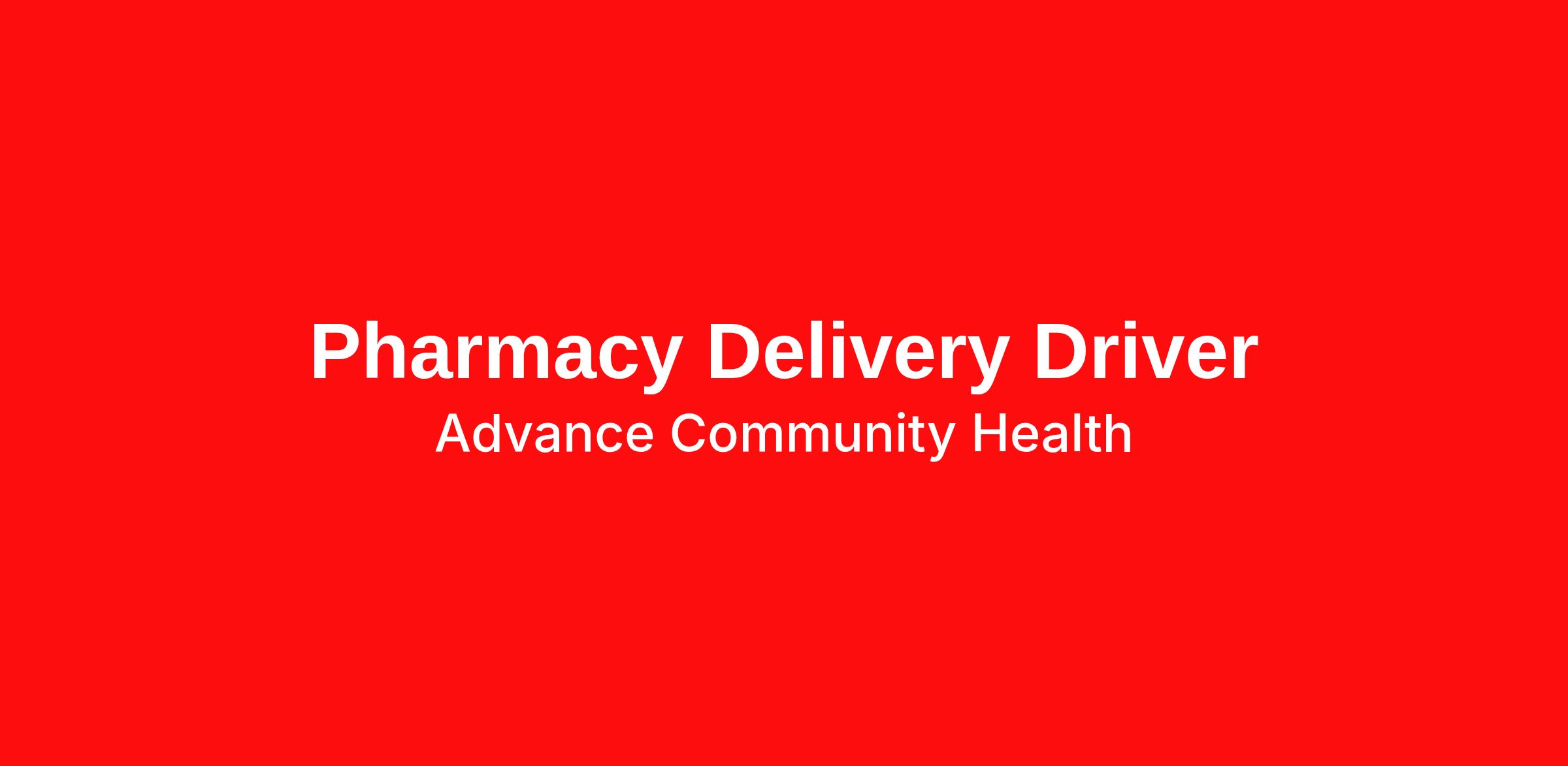 The Pharmacy Delivery Driver is responsible for the safe, timely, and confidential delivery of prescription medications and pharmacy supplies to patients and our surrounding clinic locations. This role supports pharmacy operations and access to care by ensuring patients—particularly those who are elderly, homebound, or underserved—receive their medications reliably while maintaining strict compliance with privacy, safety, and regulatory standards while representing Advance Community Health in a professional and courteous manner.