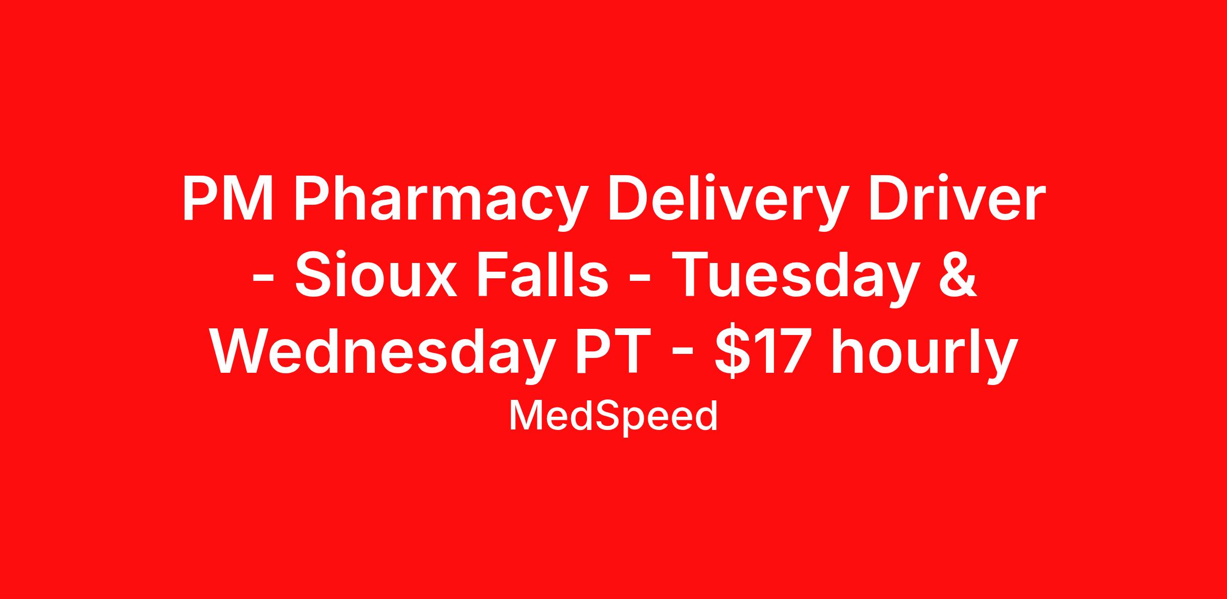 Pharmacy Delivery Driver – Sioux Falls – $17.00/hr – Part Time