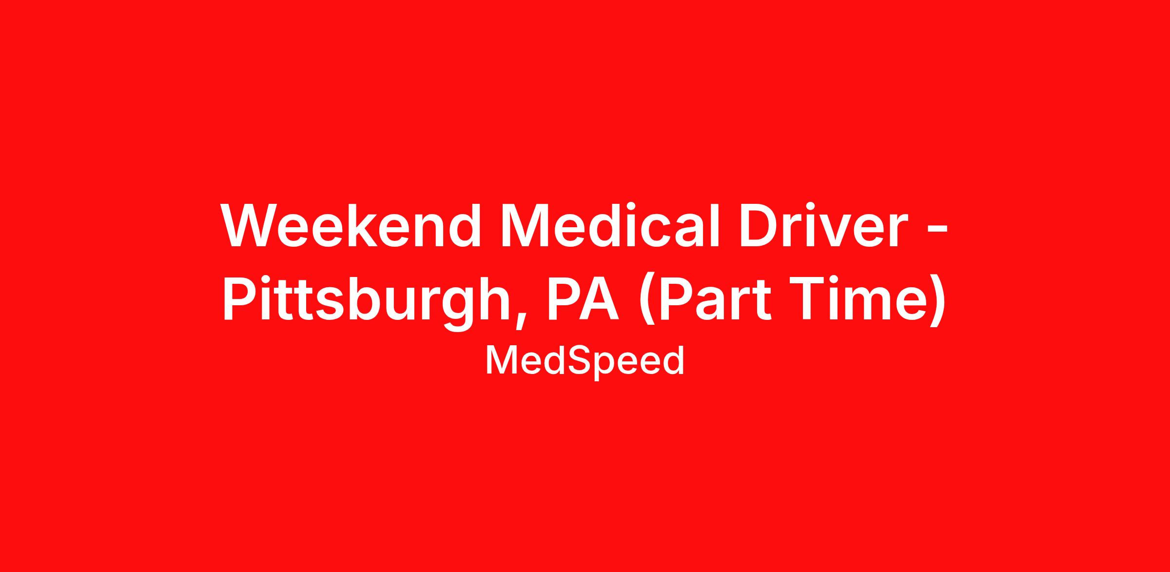 Logistics Service Representative/Medical Driver - Weekends
