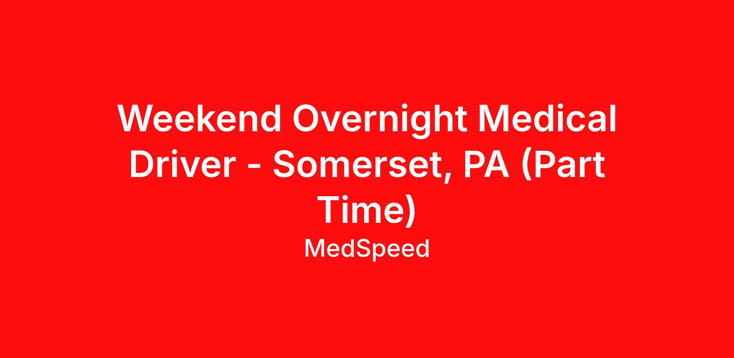 Logistics Service Representative/Medical Driver - Weekends & Overnights